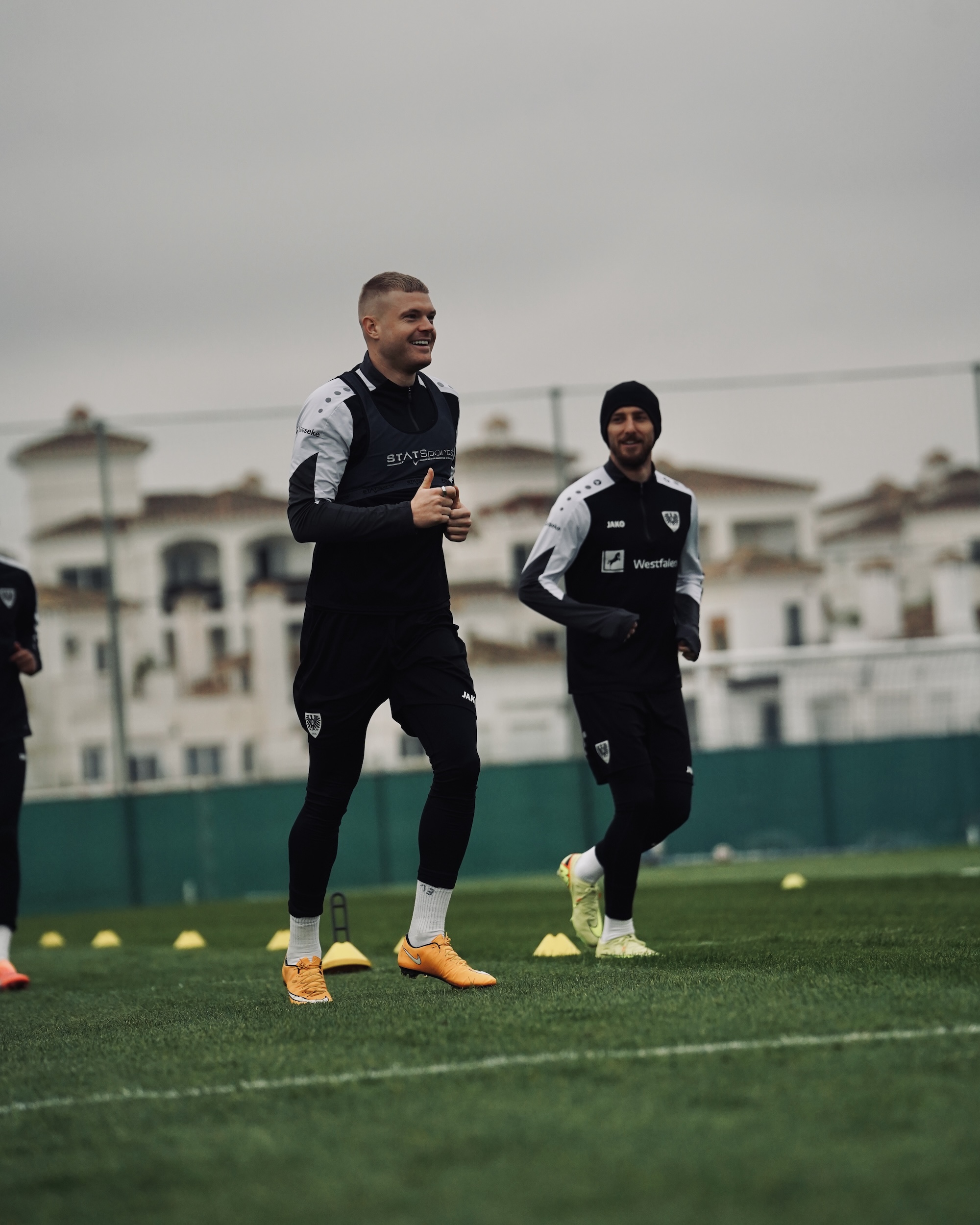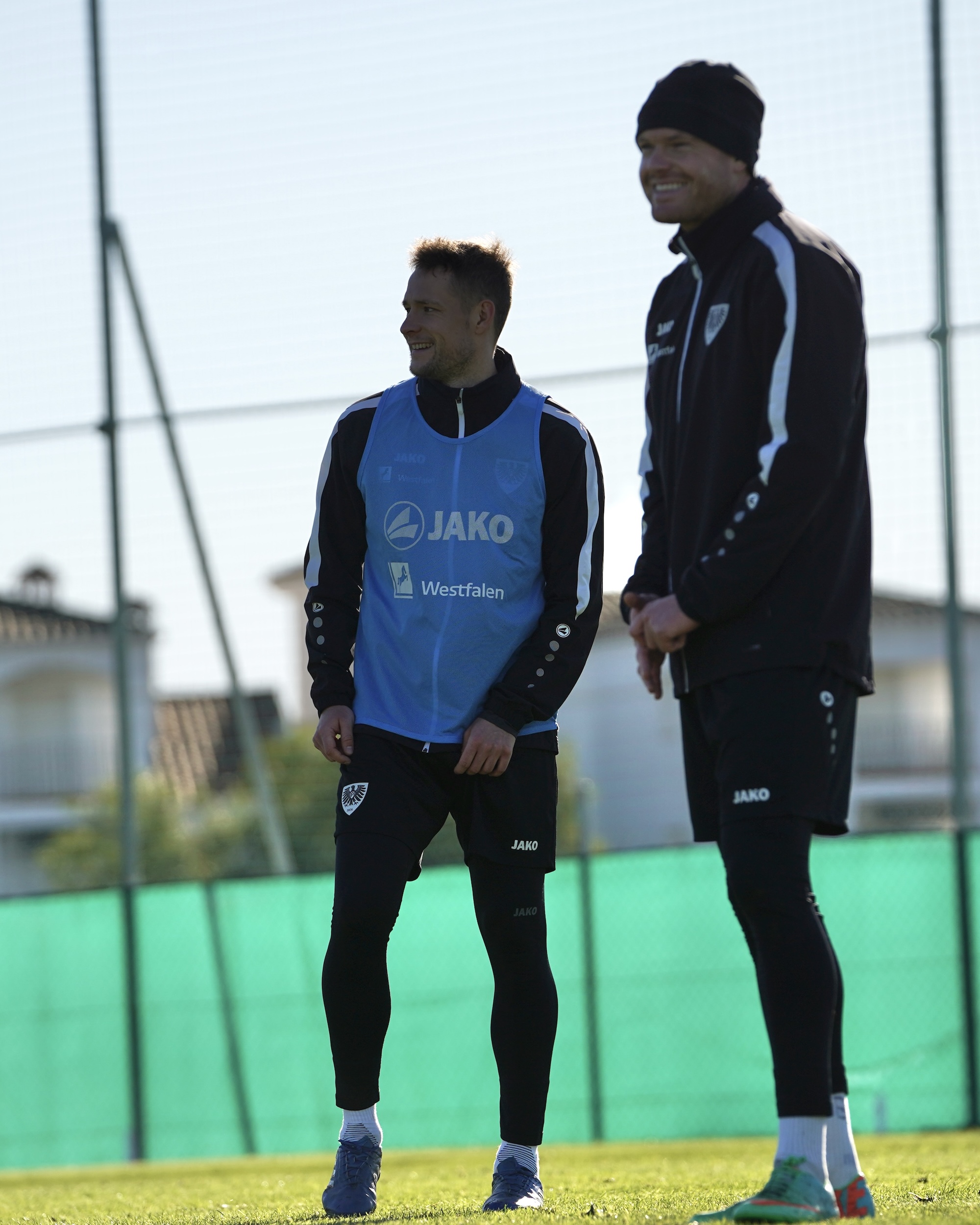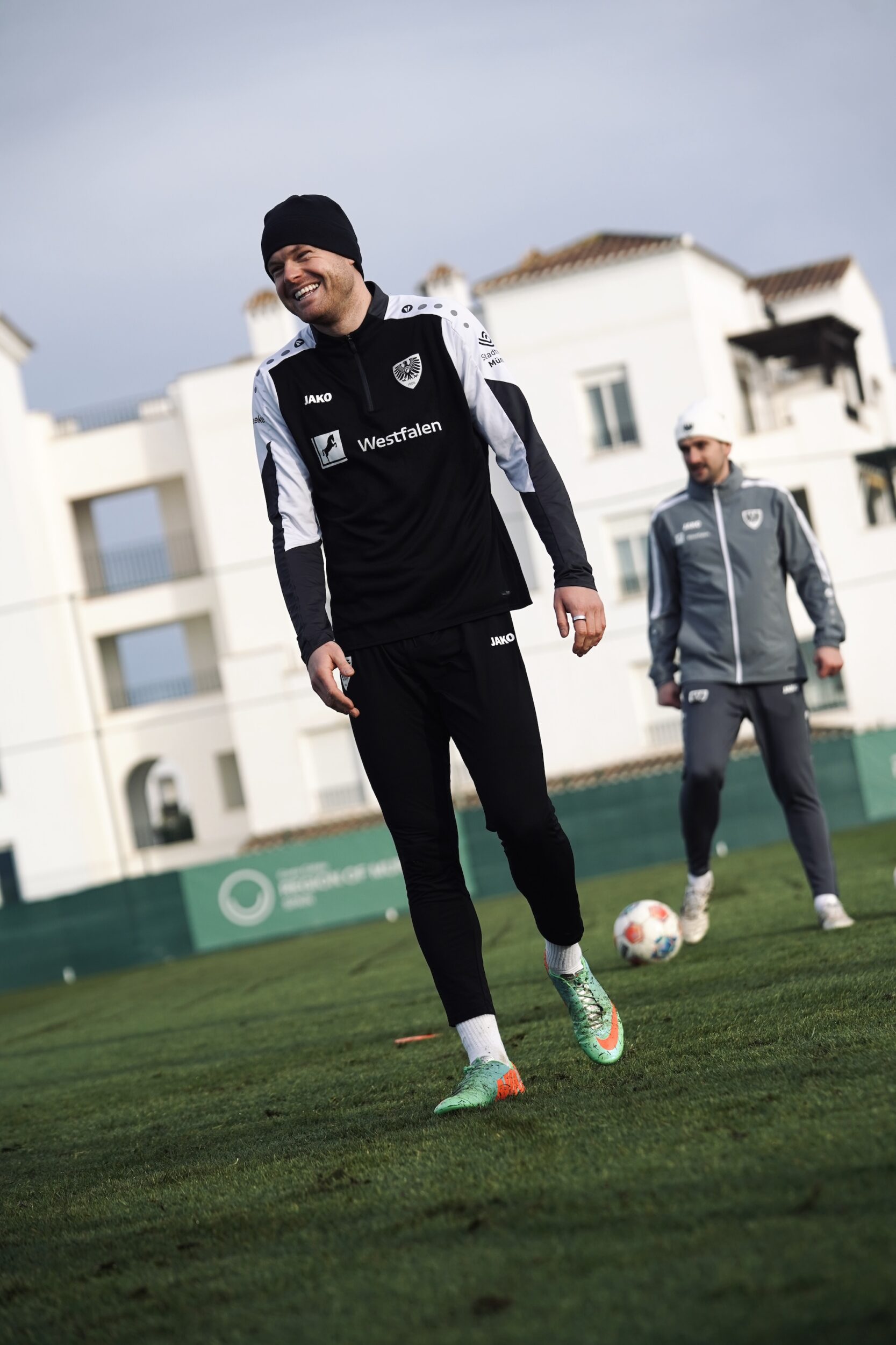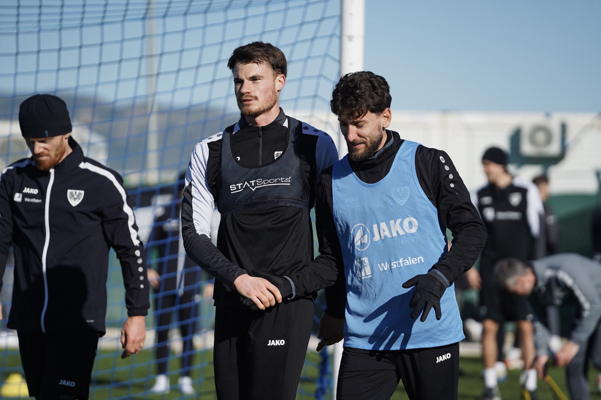 All das ist natürlich kein Vergleich zu den Bedingungen in Münster und die Entscheidung, eine Woche im Süden zu verbringen, erweist sich auch im Nachgang als goldrichtig. Im verschneiten Münster ist an ein reguläres Training im Moment kaum zu denken. Unter einer weißen Schneedecke verstecken sich derzeit der Stadionrasen und die heimischen Trainingsplätze.
