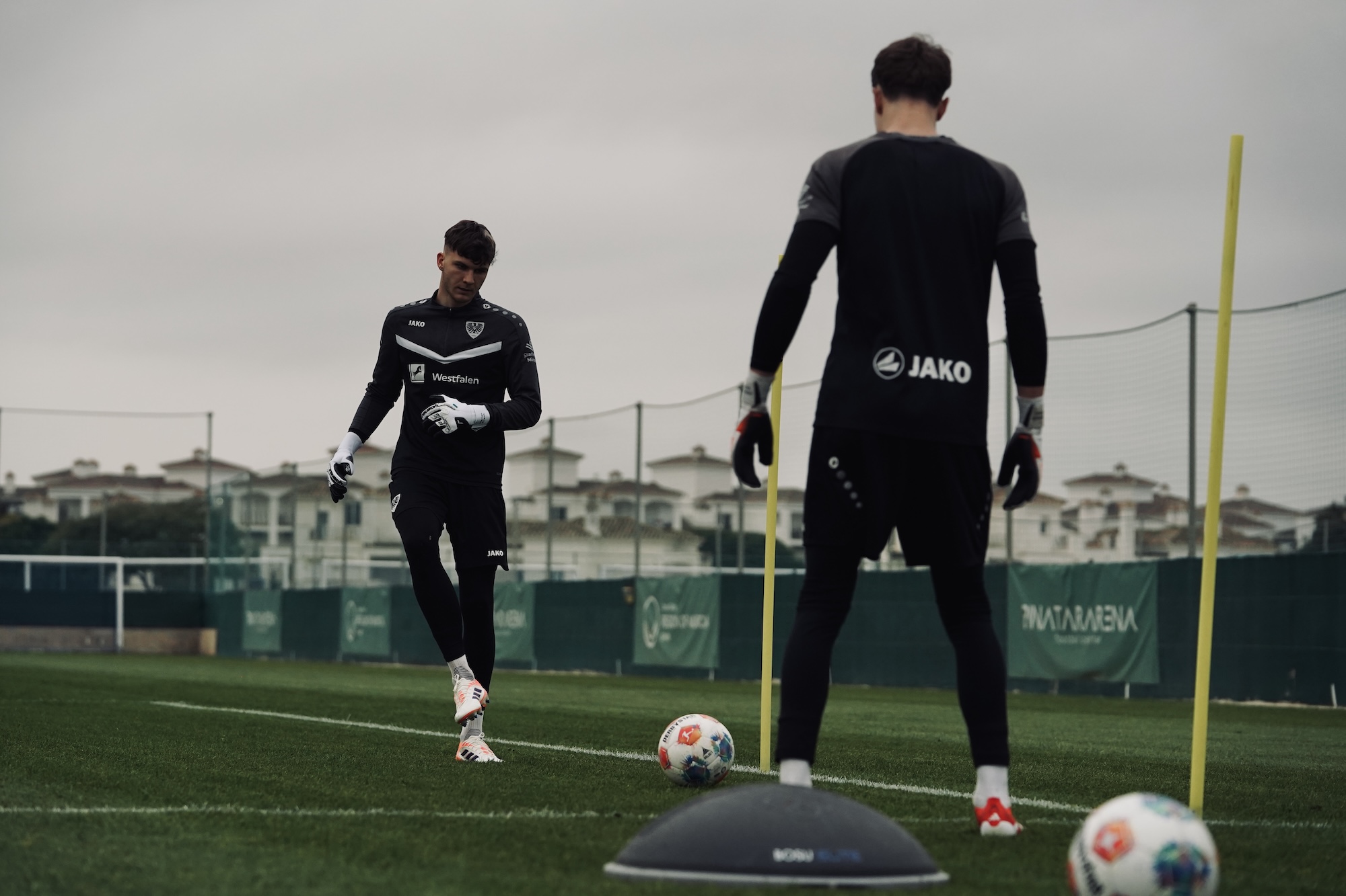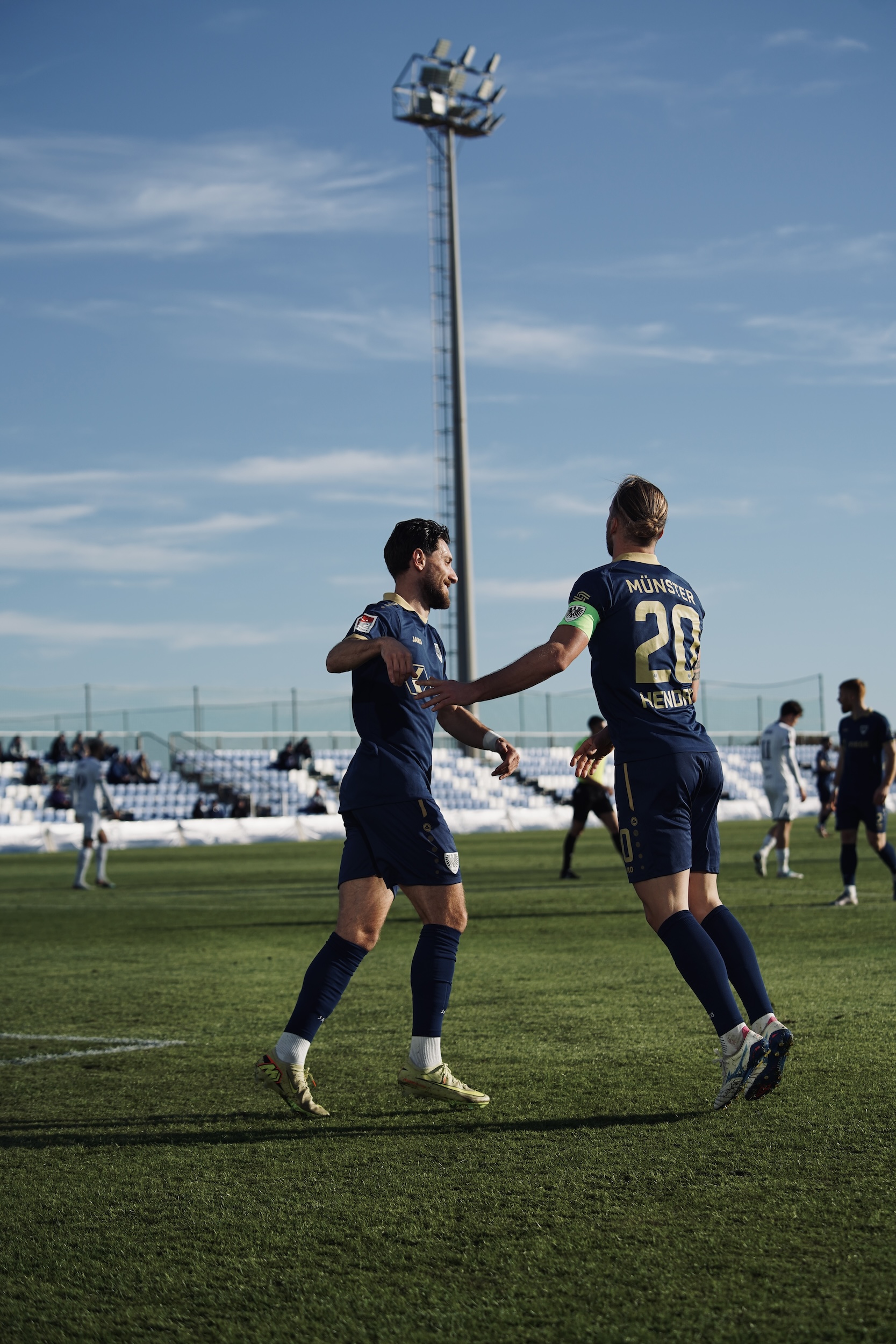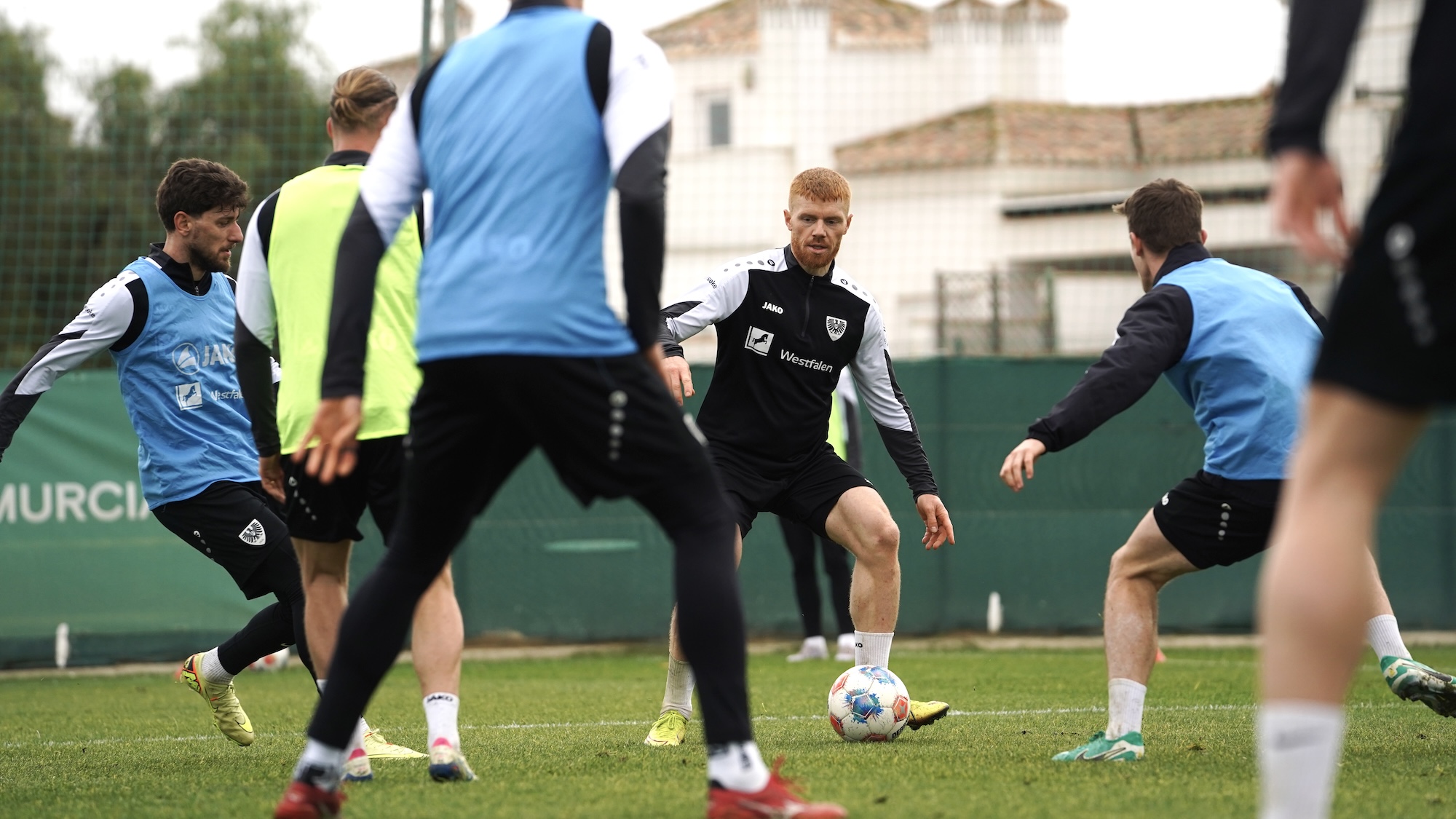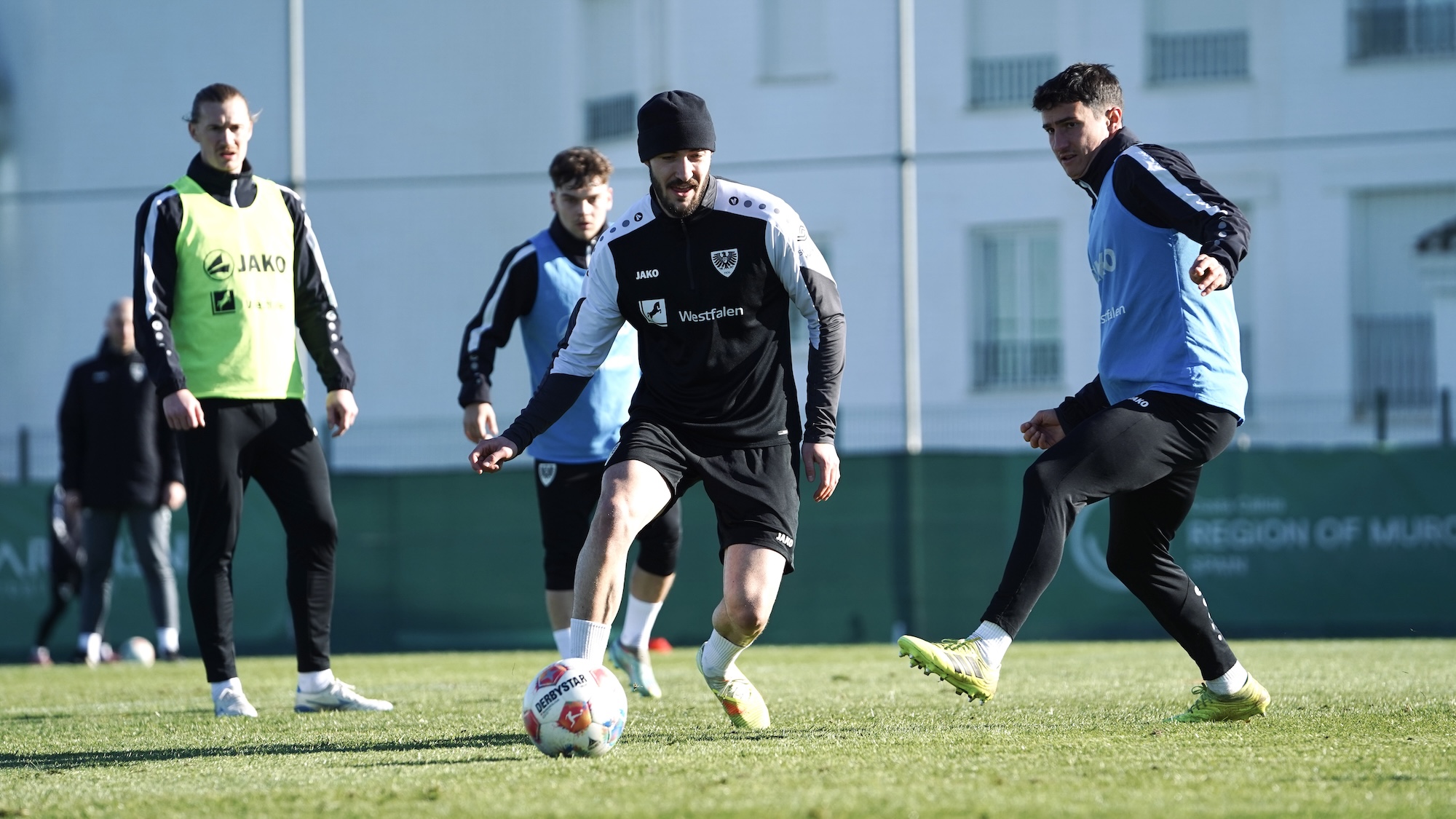 All das ist natürlich kein Vergleich zu den Bedingungen in Münster und die Entscheidung, eine Woche im Süden zu verbringen, erweist sich auch im Nachgang als goldrichtig. Im verschneiten Münster ist an ein reguläres Training im Moment kaum zu denken. Unter einer weißen Schneedecke verstecken sich derzeit der Stadionrasen und die heimischen Trainingsplätze.