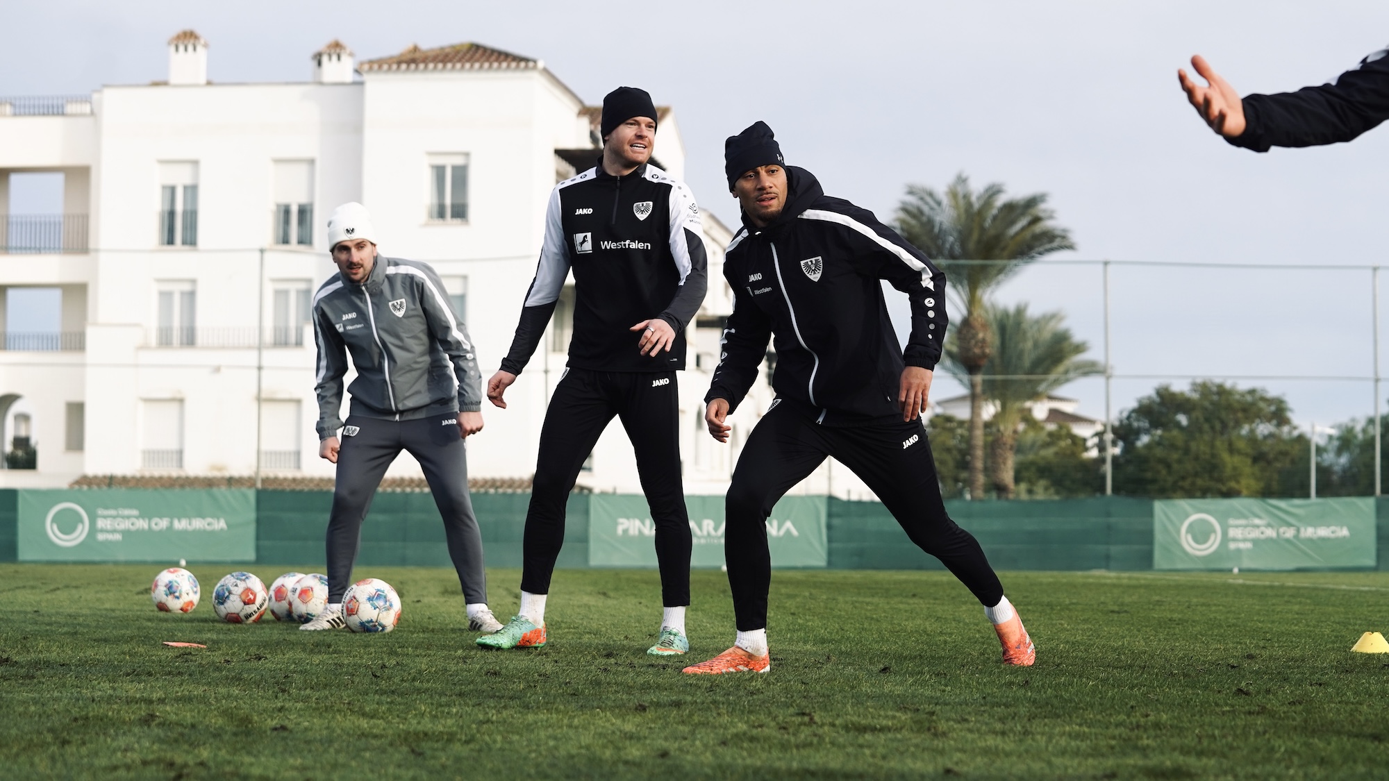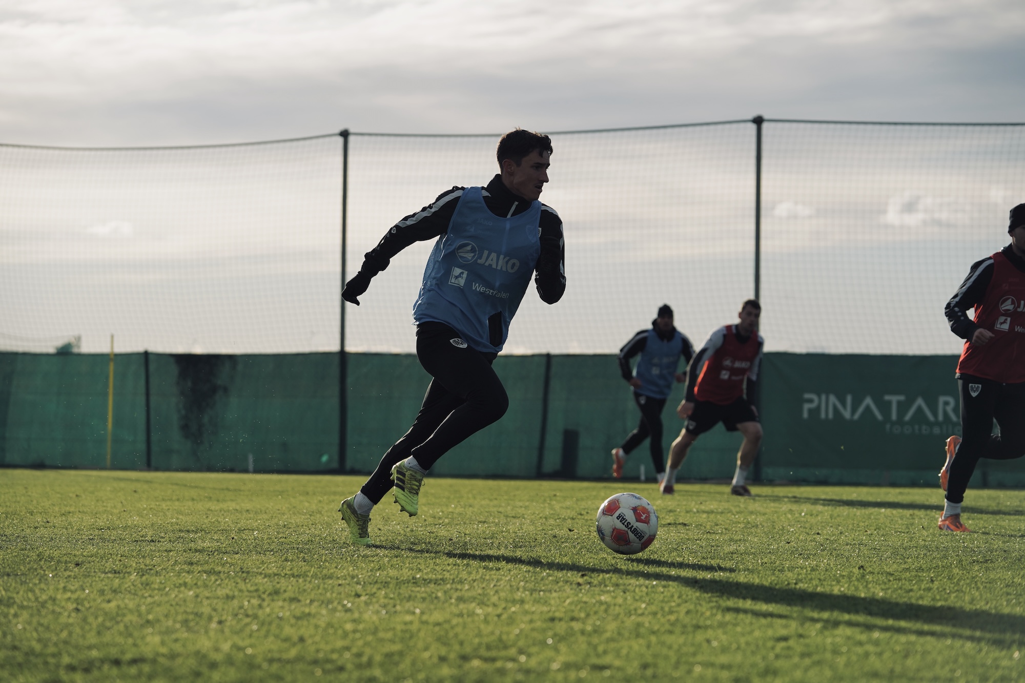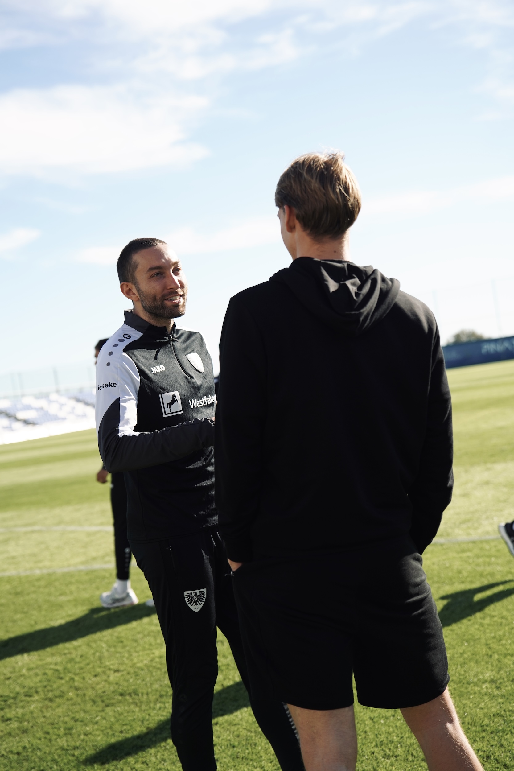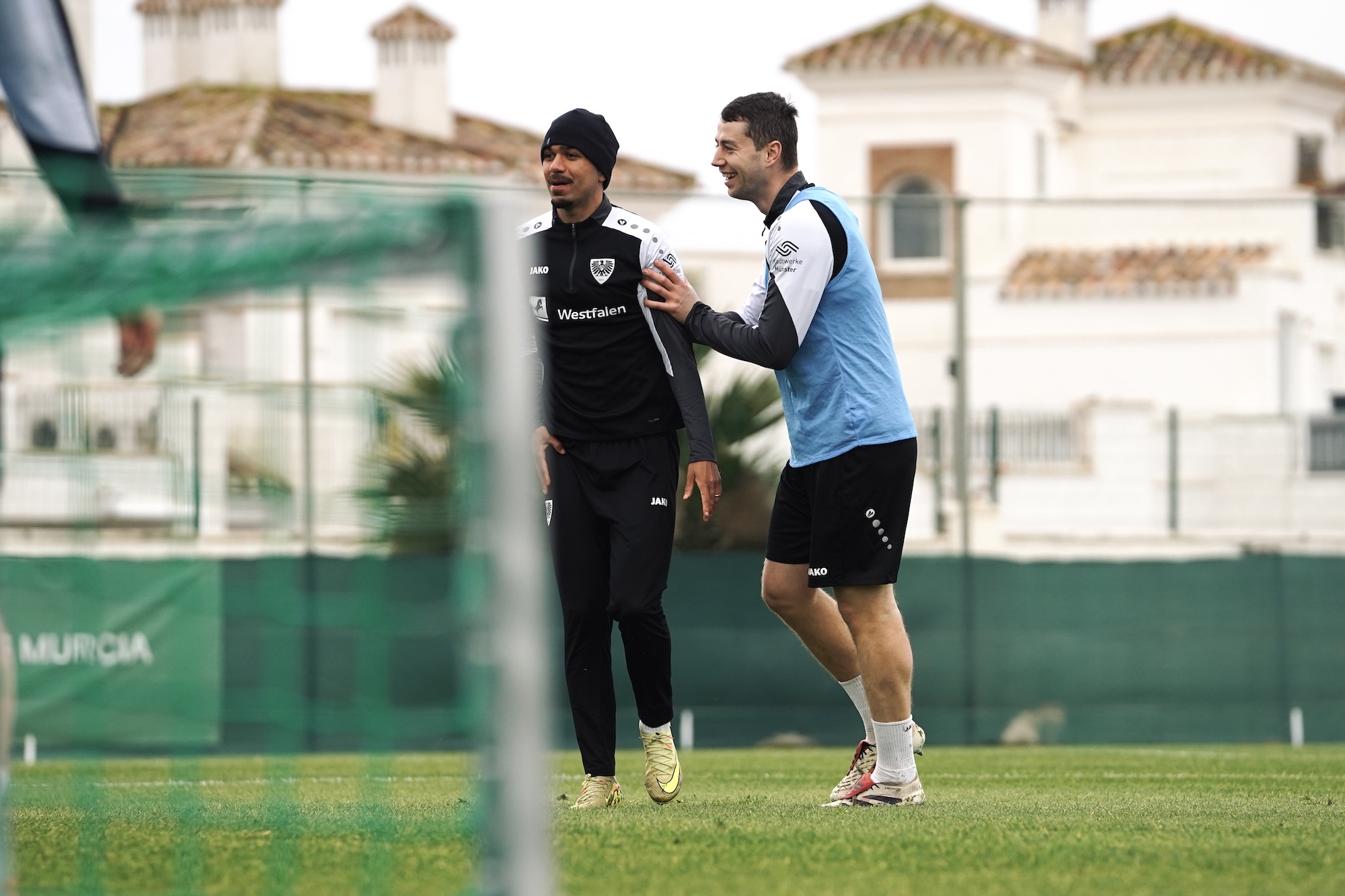 All das ist natürlich kein Vergleich zu den Bedingungen in Münster und die Entscheidung, eine Woche im Süden zu verbringen, erweist sich auch im Nachgang als goldrichtig. Im verschneiten Münster ist an ein reguläres Training im Moment kaum zu denken. Unter einer weißen Schneedecke verstecken sich derzeit der Stadionrasen und die heimischen Trainingsplätze.