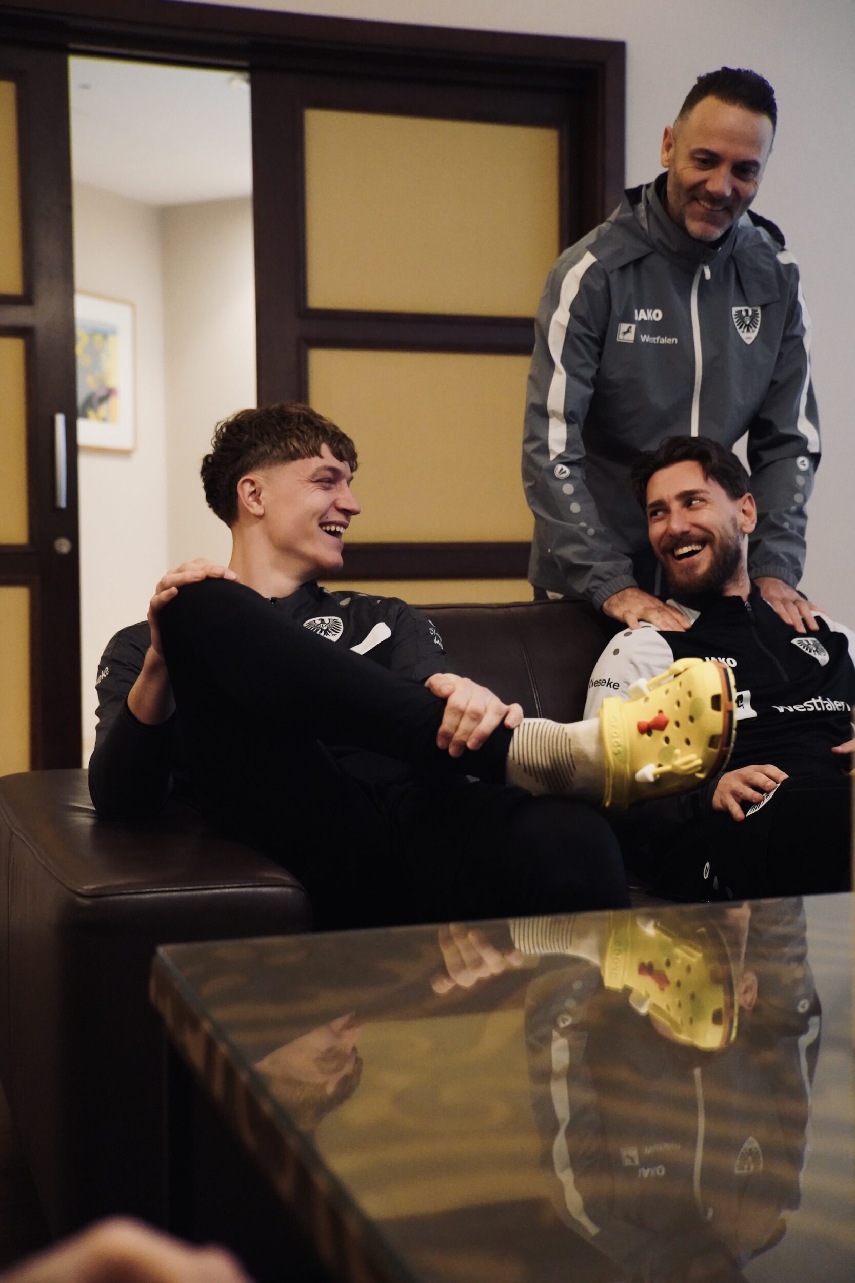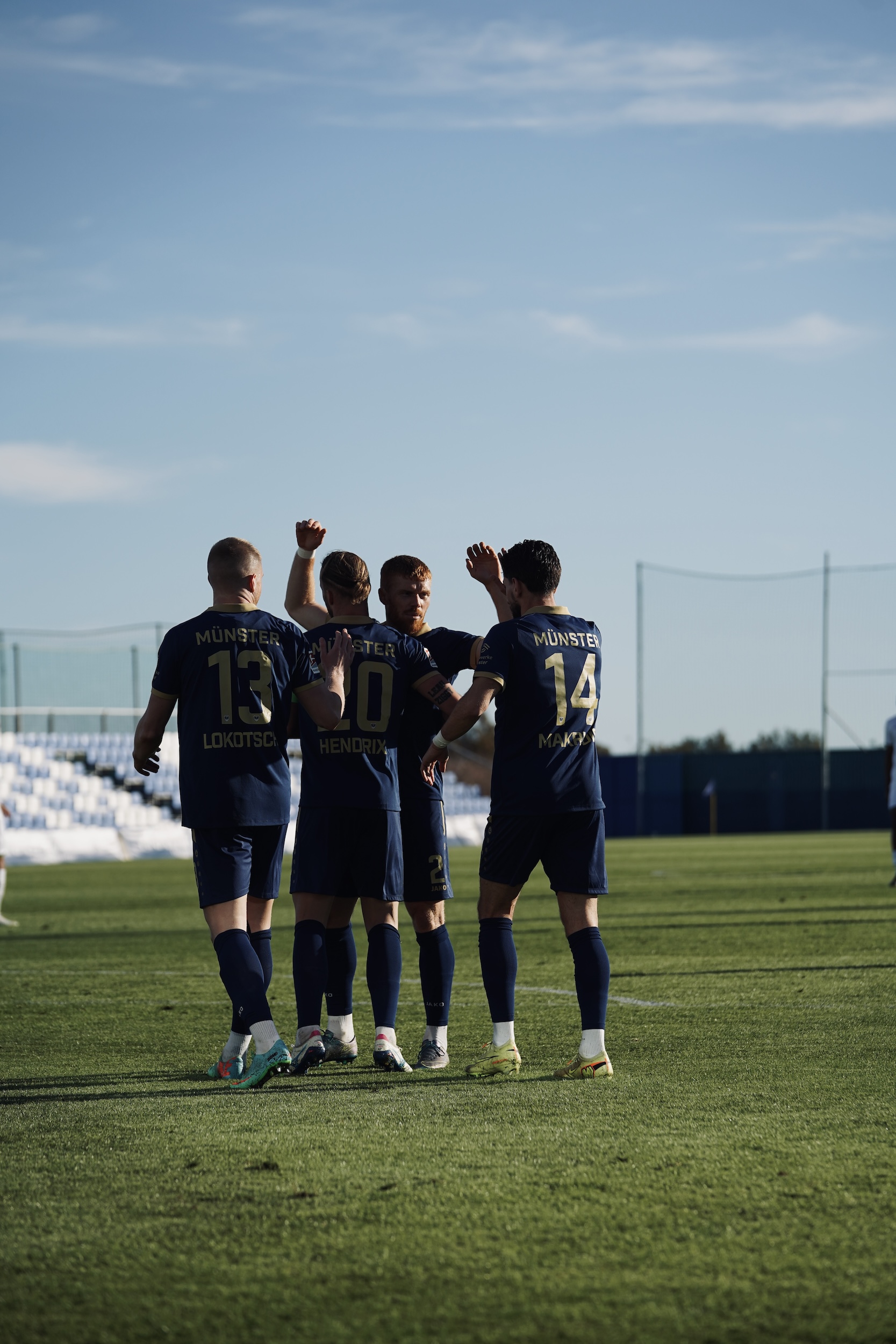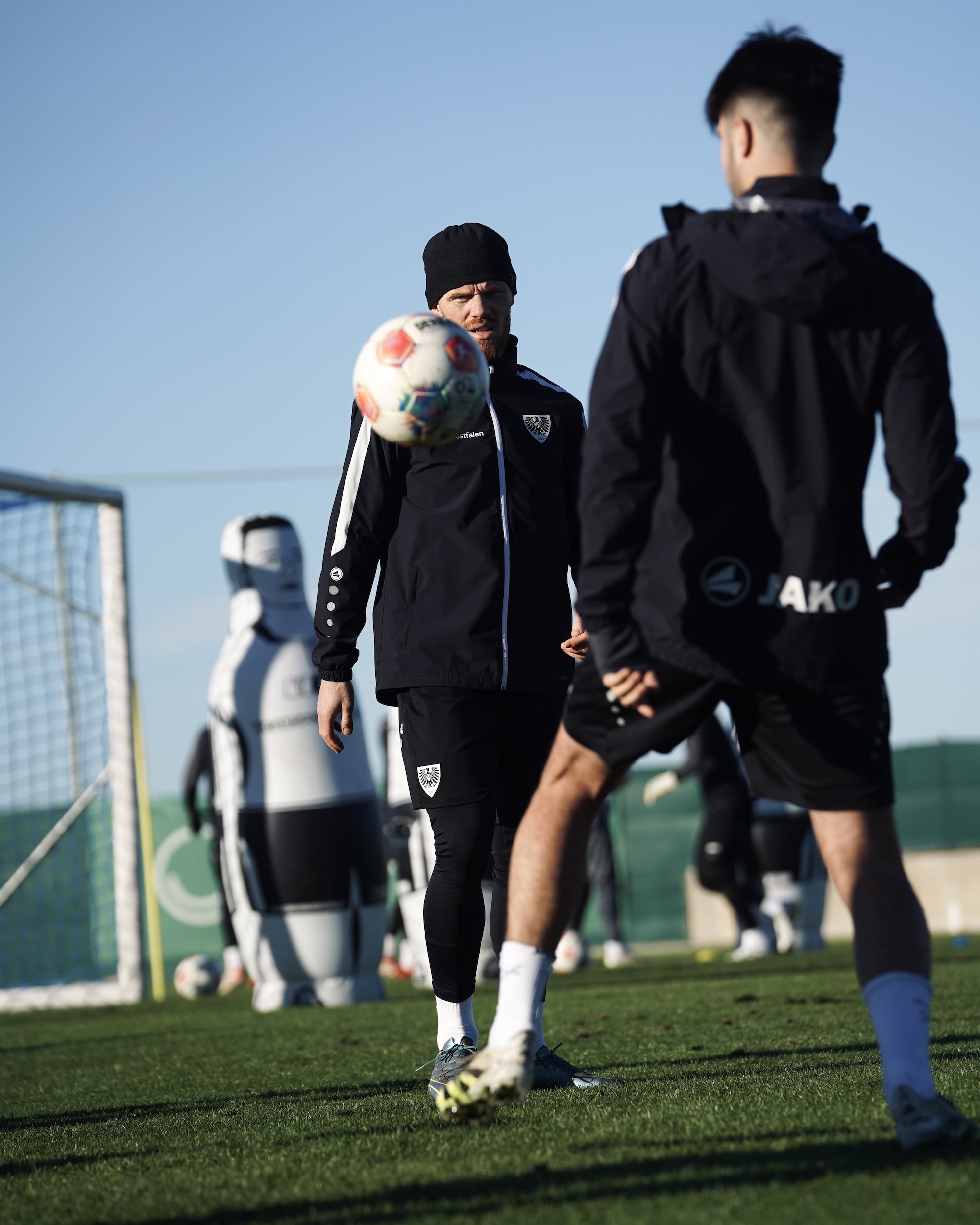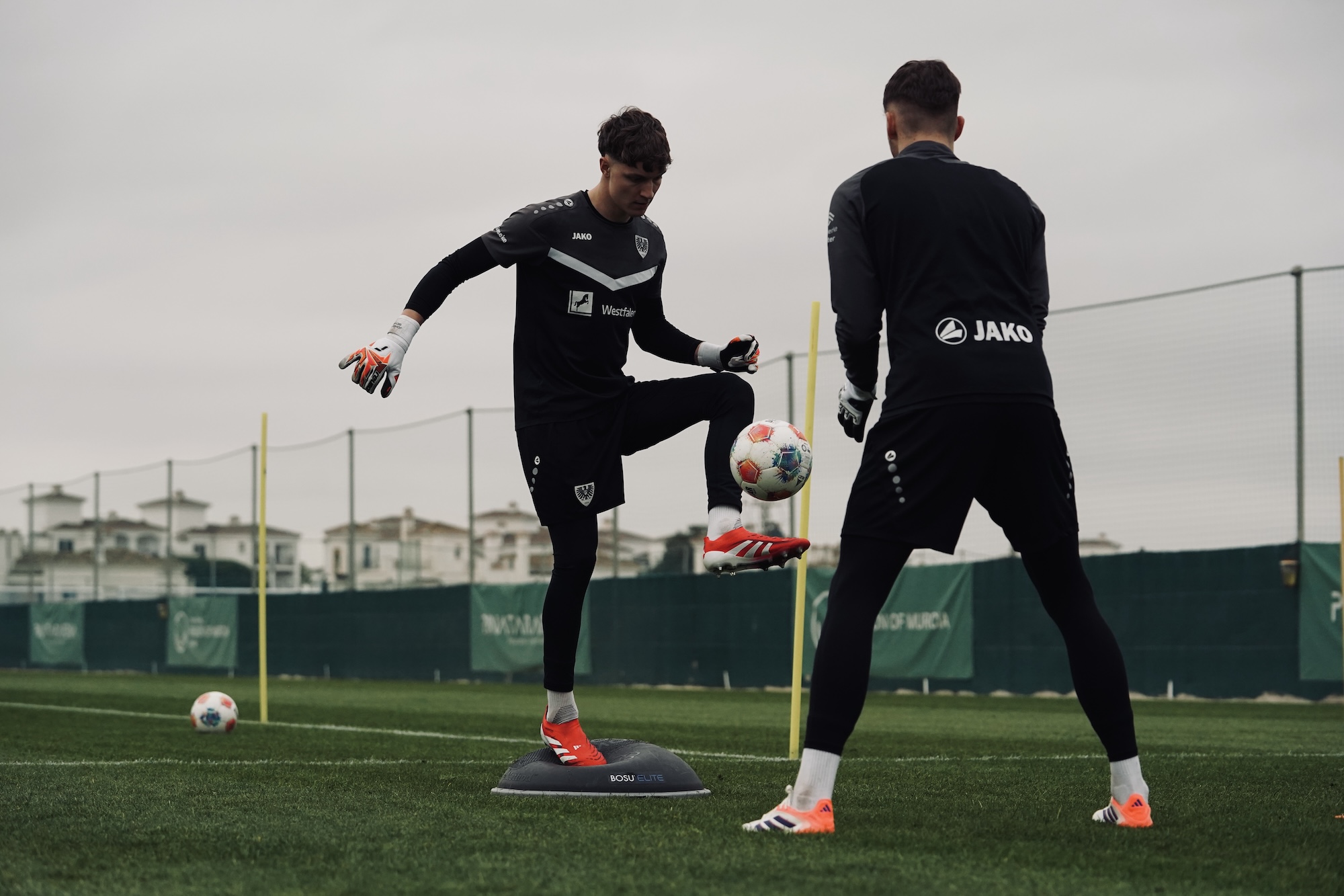 All das ist natürlich kein Vergleich zu den Bedingungen in Münster und die Entscheidung, eine Woche im Süden zu verbringen, erweist sich auch im Nachgang als goldrichtig. Im verschneiten Münster ist an ein reguläres Training im Moment kaum zu denken. Unter einer weißen Schneedecke verstecken sich derzeit der Stadionrasen und die heimischen Trainingsplätze.