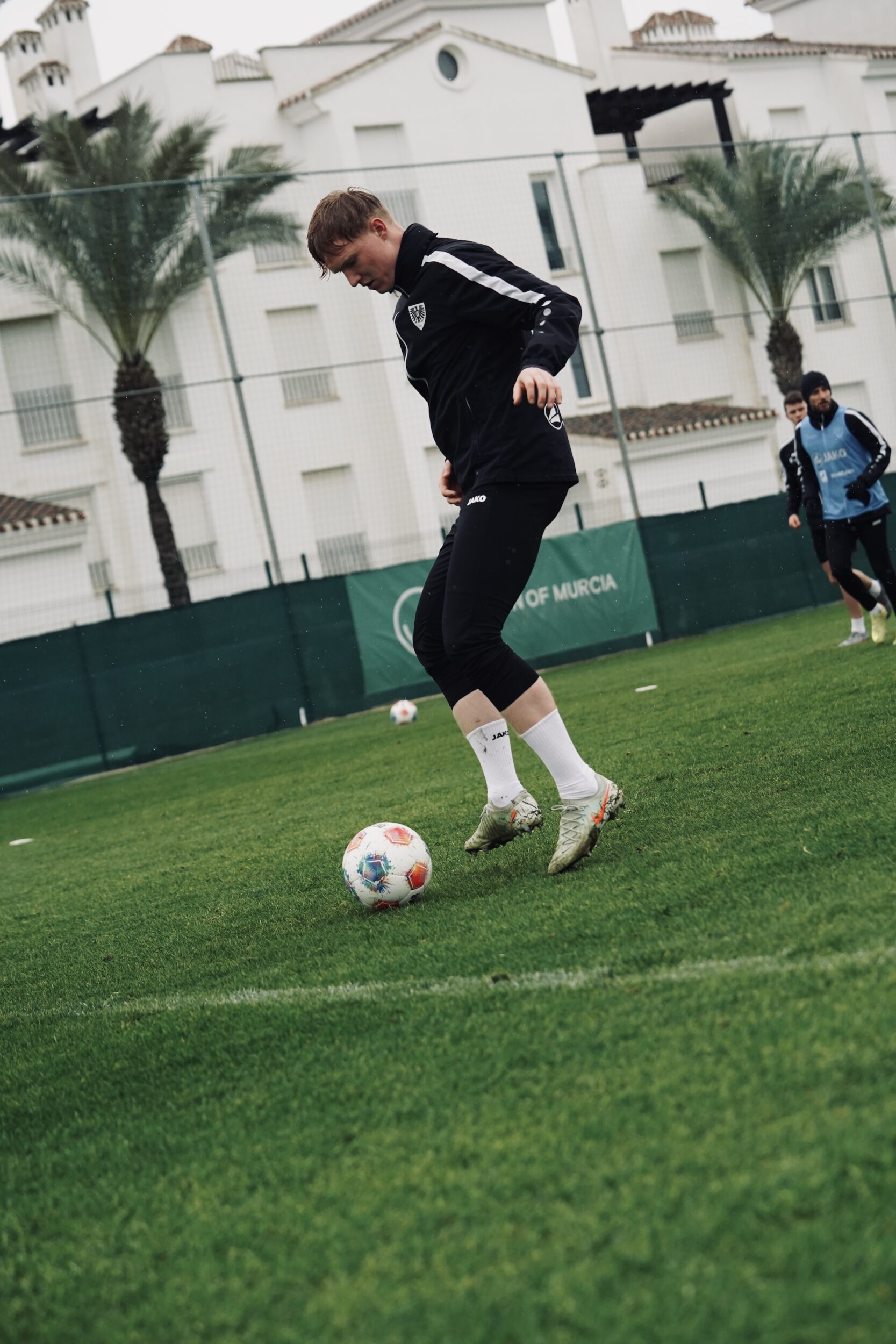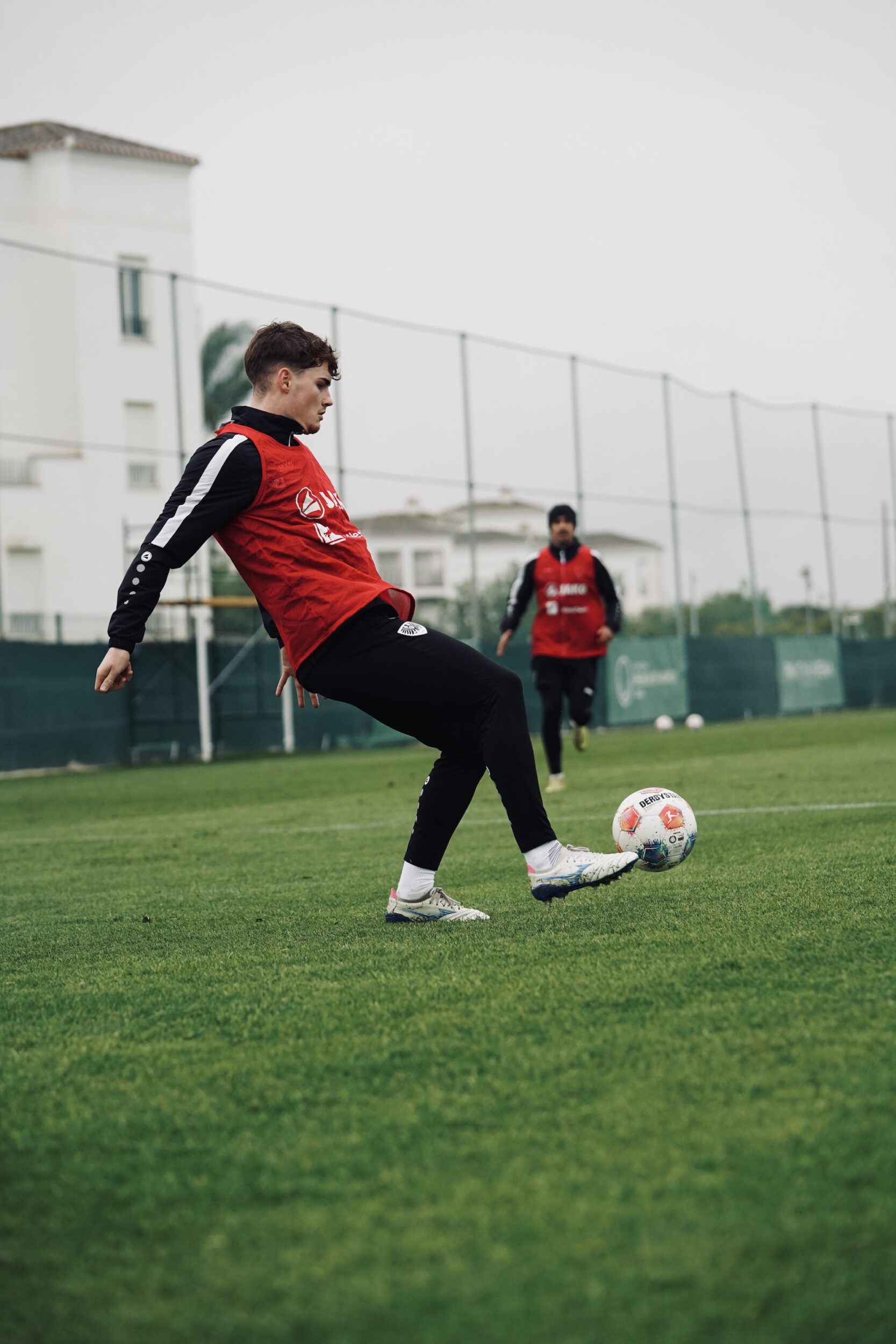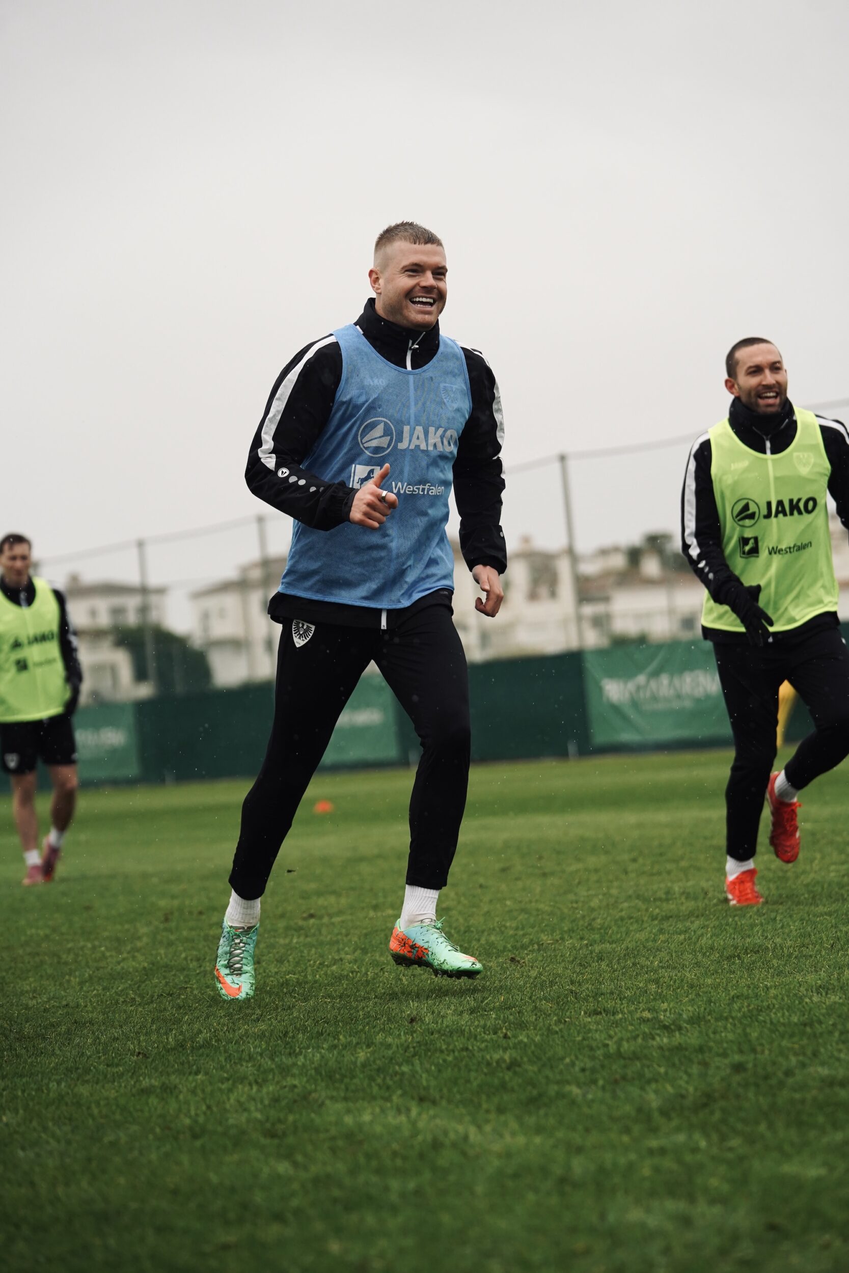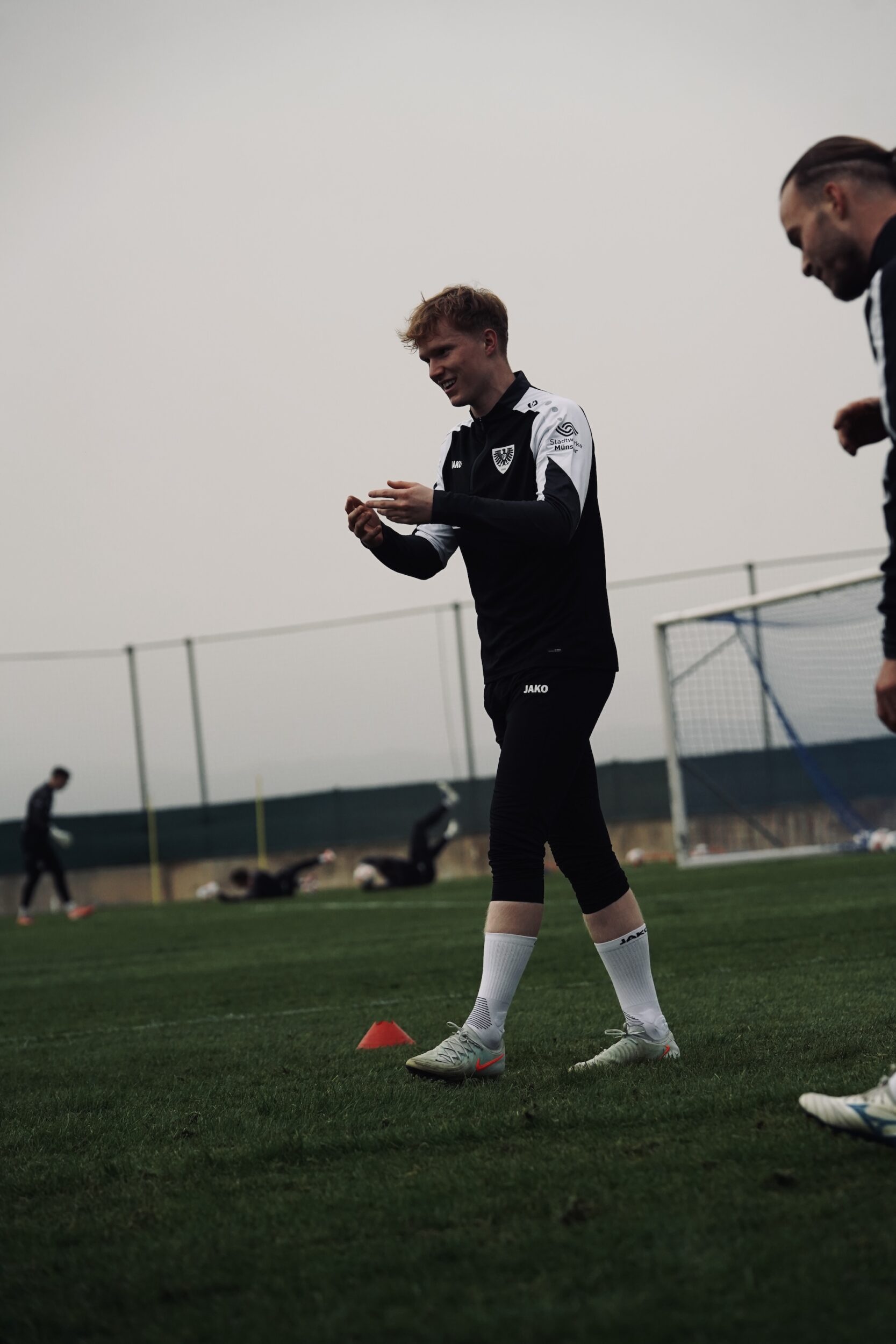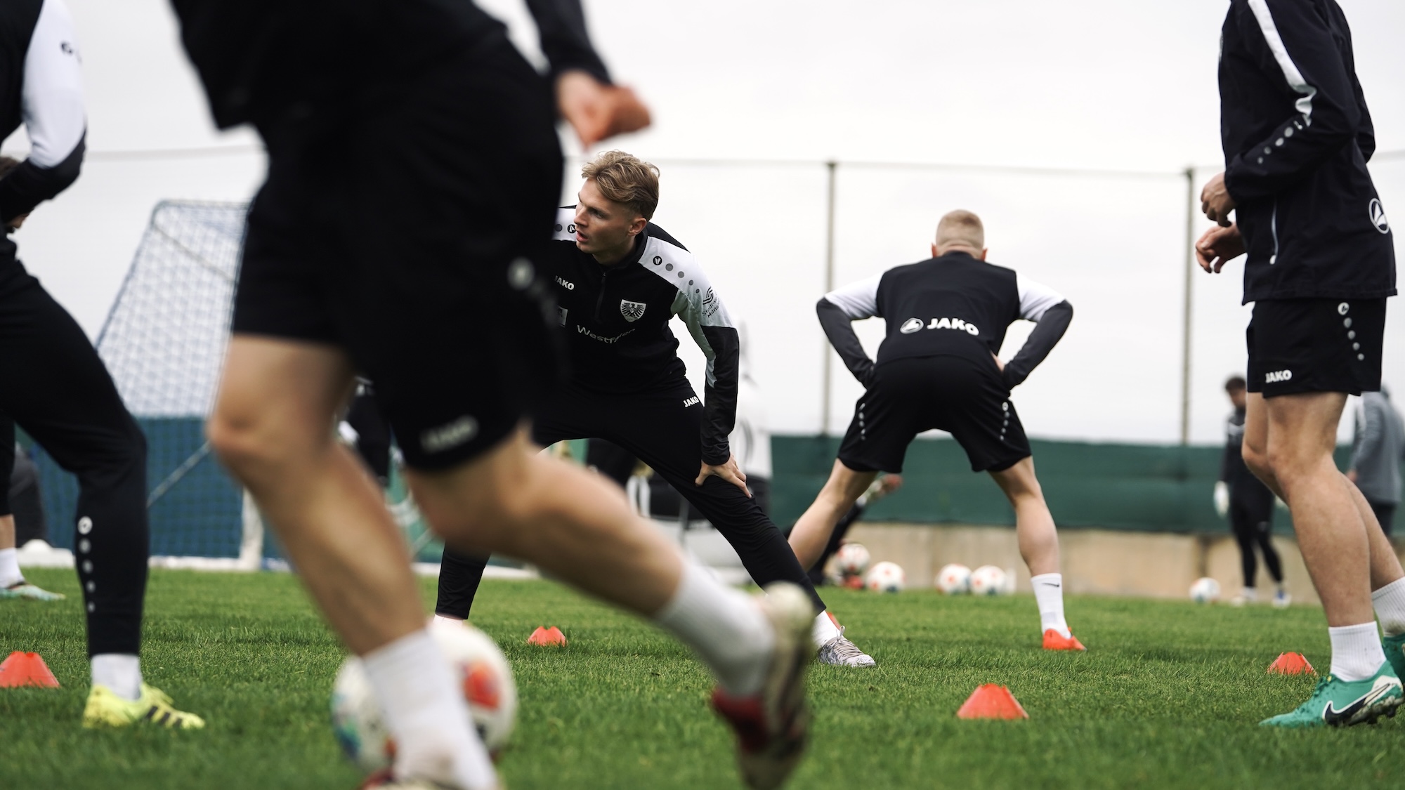 Nach der gut einstündigen Busfahrt zum Teamhotel und einem kurzen Snack ging es direkt auf den Trainingsplatz, um nach den freien Tagen und der Zeit im Flieger und im Bus etwa 60 Minuten lang dosiert in die Bewegung zu kommen. In den nächsten Tagen stehen dann täglich zwei Einheiten sowie das Testspiel gegen den belgischen Erstligisten Oud-Heverlee Leuven auf dem Programm