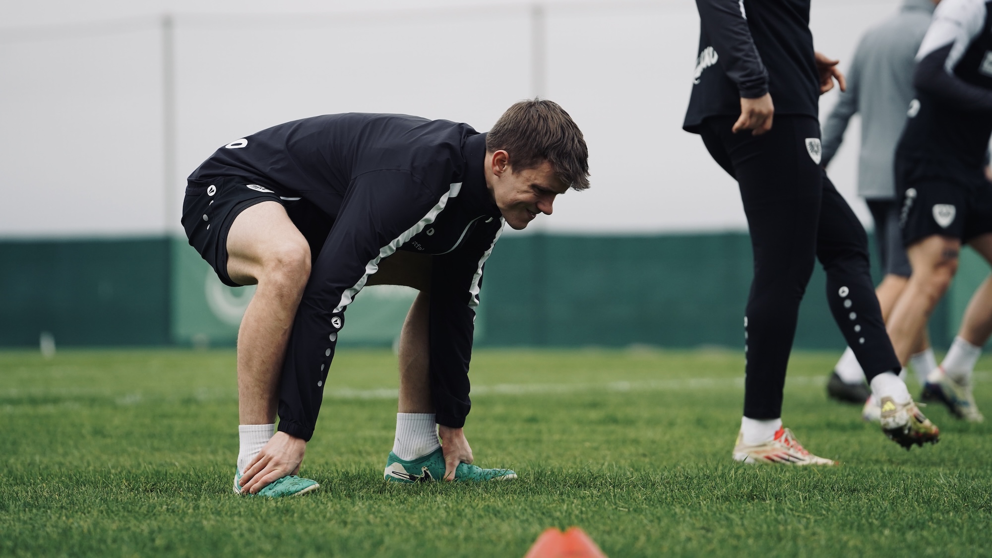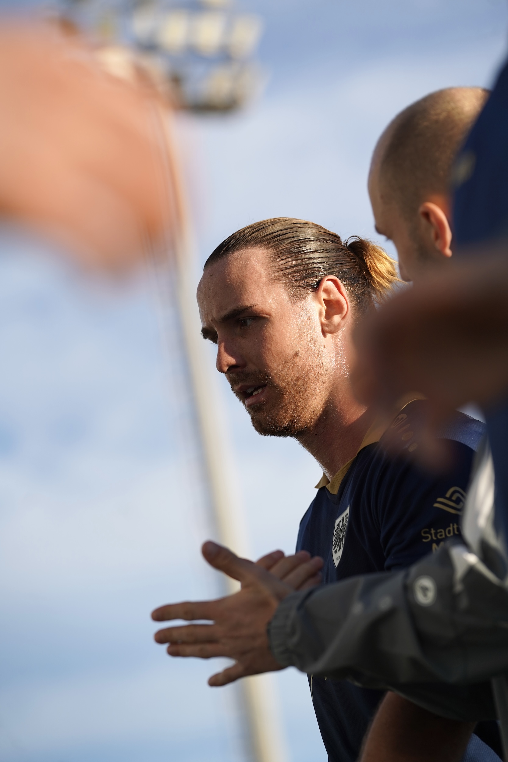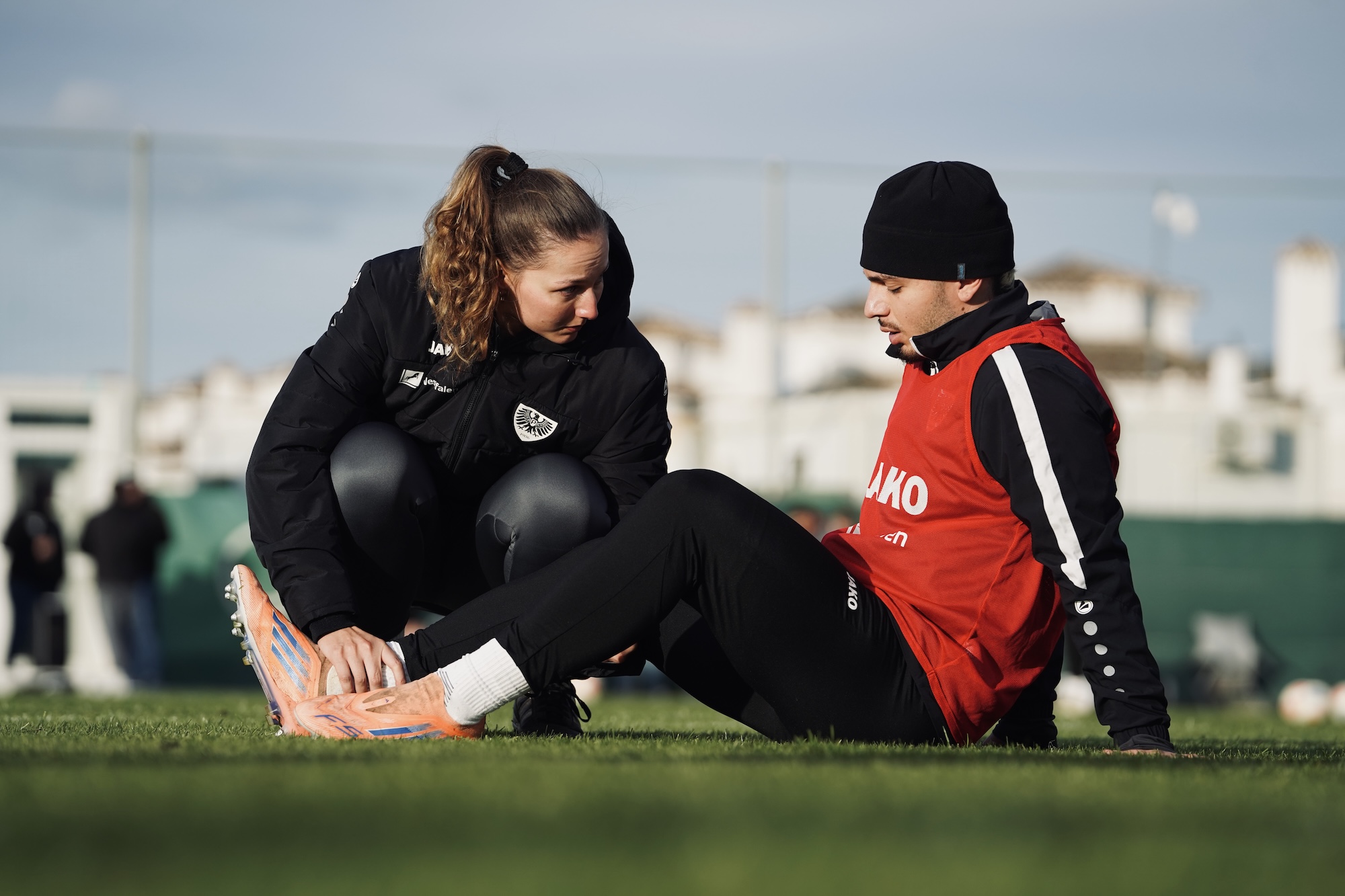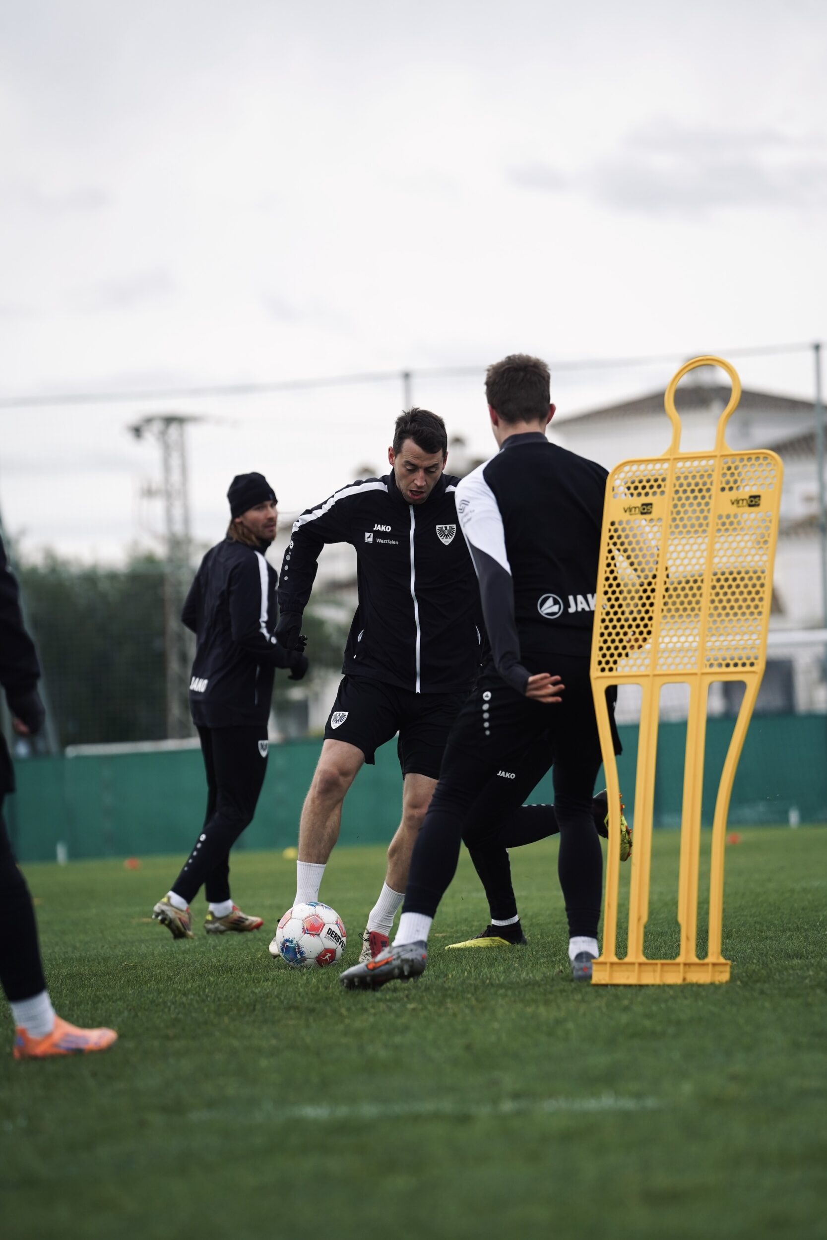 Nach der gut einstündigen Busfahrt zum Teamhotel und einem kurzen Snack ging es direkt auf den Trainingsplatz, um nach den freien Tagen und der Zeit im Flieger und im Bus etwa 60 Minuten lang dosiert in die Bewegung zu kommen. In den nächsten Tagen stehen dann täglich zwei Einheiten sowie das Testspiel gegen den belgischen Erstligisten Oud-Heverlee Leuven auf dem Programm