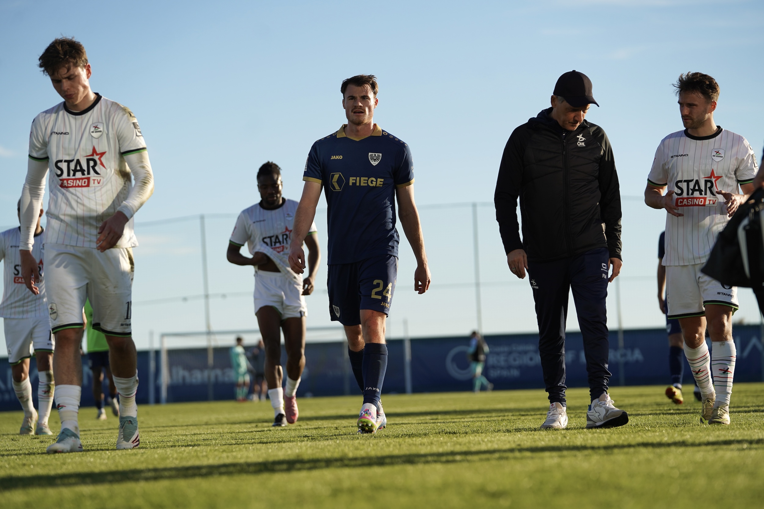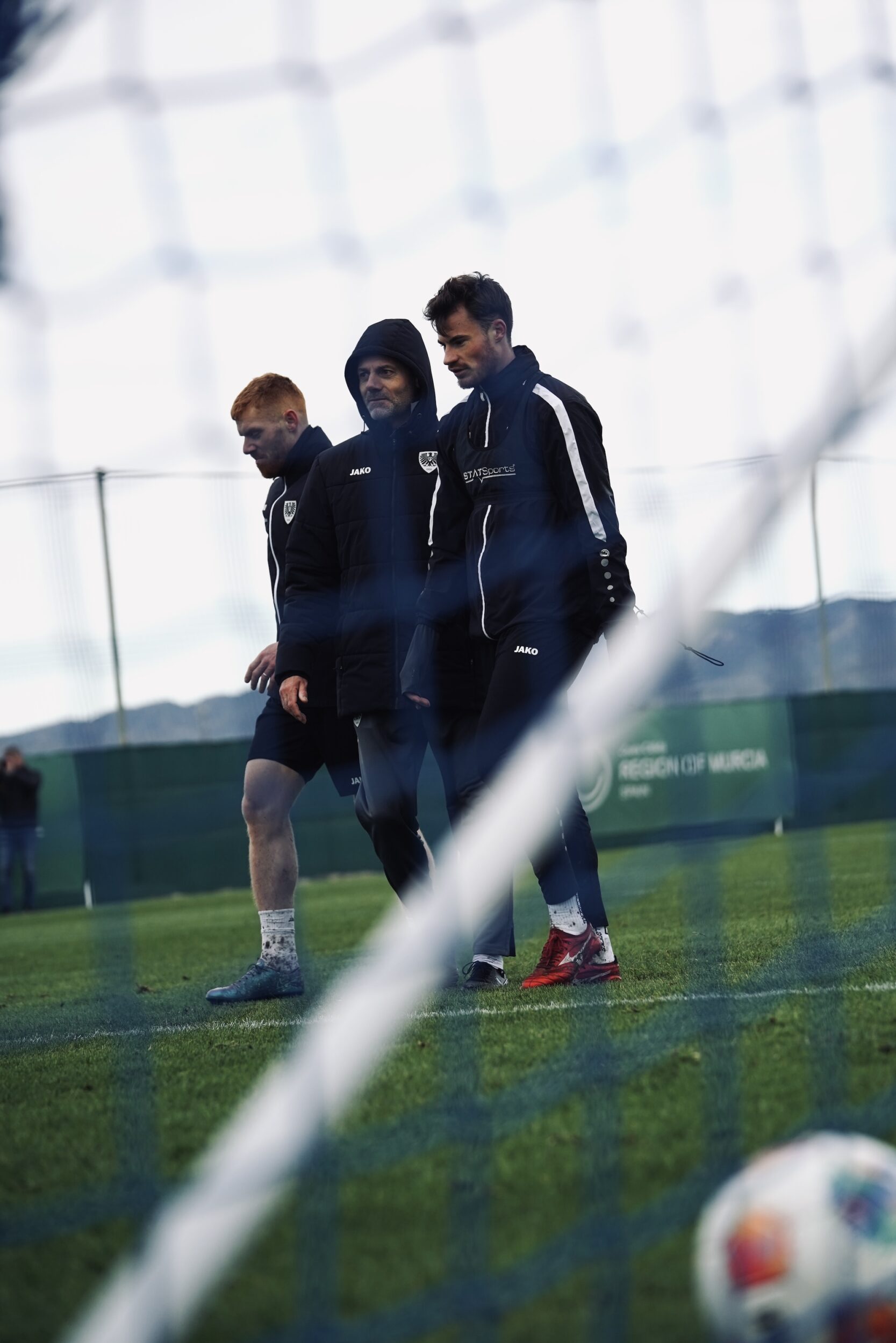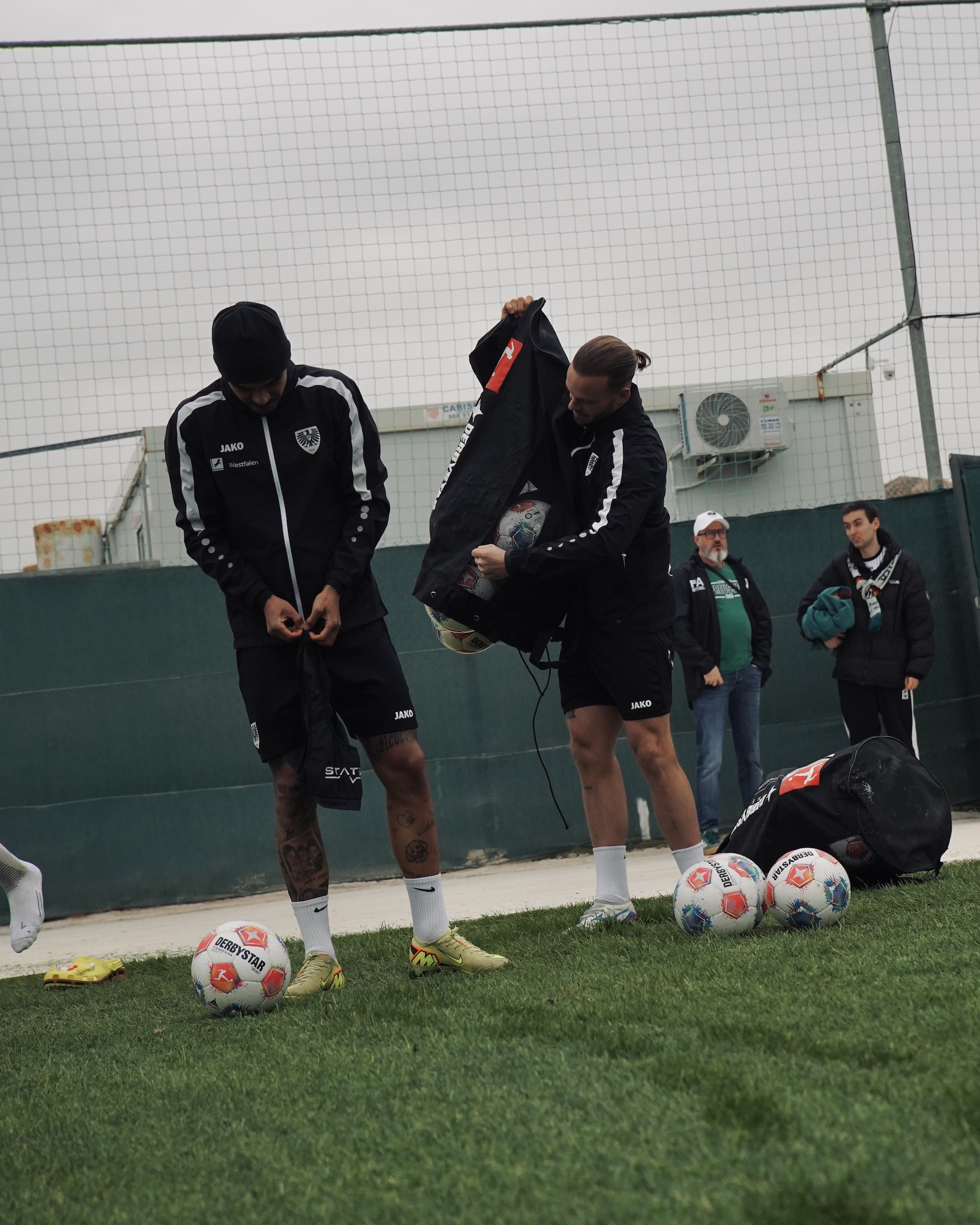 Den freien Nachmittag nutzten einige Spieler und Teile des Trainerteams, um bei herrlichem Sonnenschein dem Hotel für ein paar Stunden zu entfliehen und sich in der 20 Busminuten entfernten Pinatar Arena – unserem Spielort am Donnerstag – das Testspiel zwischen unserem Hotelnachbarn Servette Genf und unserem Ligakonkurrenten Holstein Kiel anzuschauen. Für ehemalige Störche wie Marvin Schulz, Mikkel Kirkeskov, Marcel Benger oder unseren Sportdirektor Jan Uphues war es die perfekte Gelegenheit, um ein paar bekannte Gesichter wiederzusehen. Auch einige Preußenfans mischten sich unter die Zuschauer. Die Partie endete 1:1-Unentschieden, die „Grenats“ glichen erst kurz vor Schluss aus.
