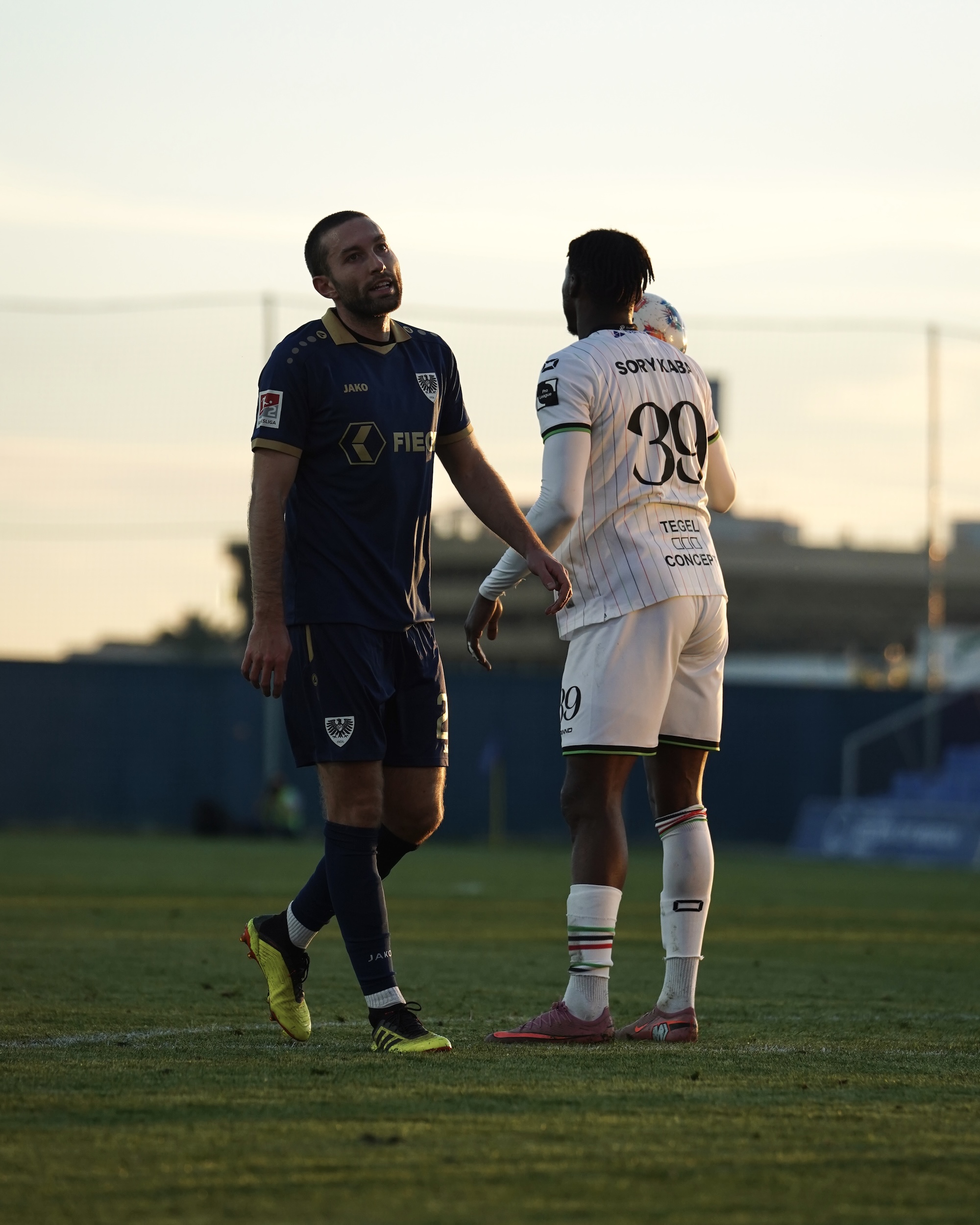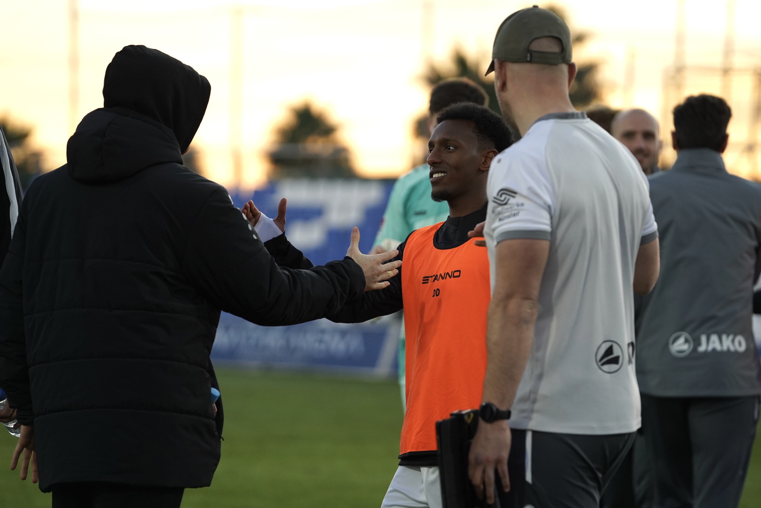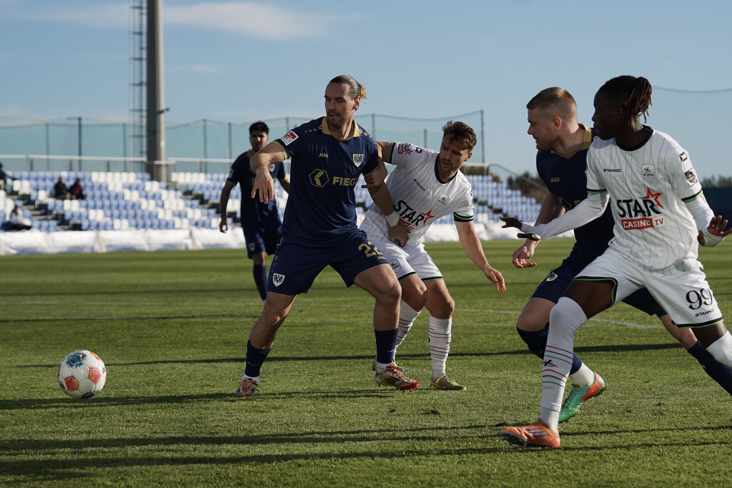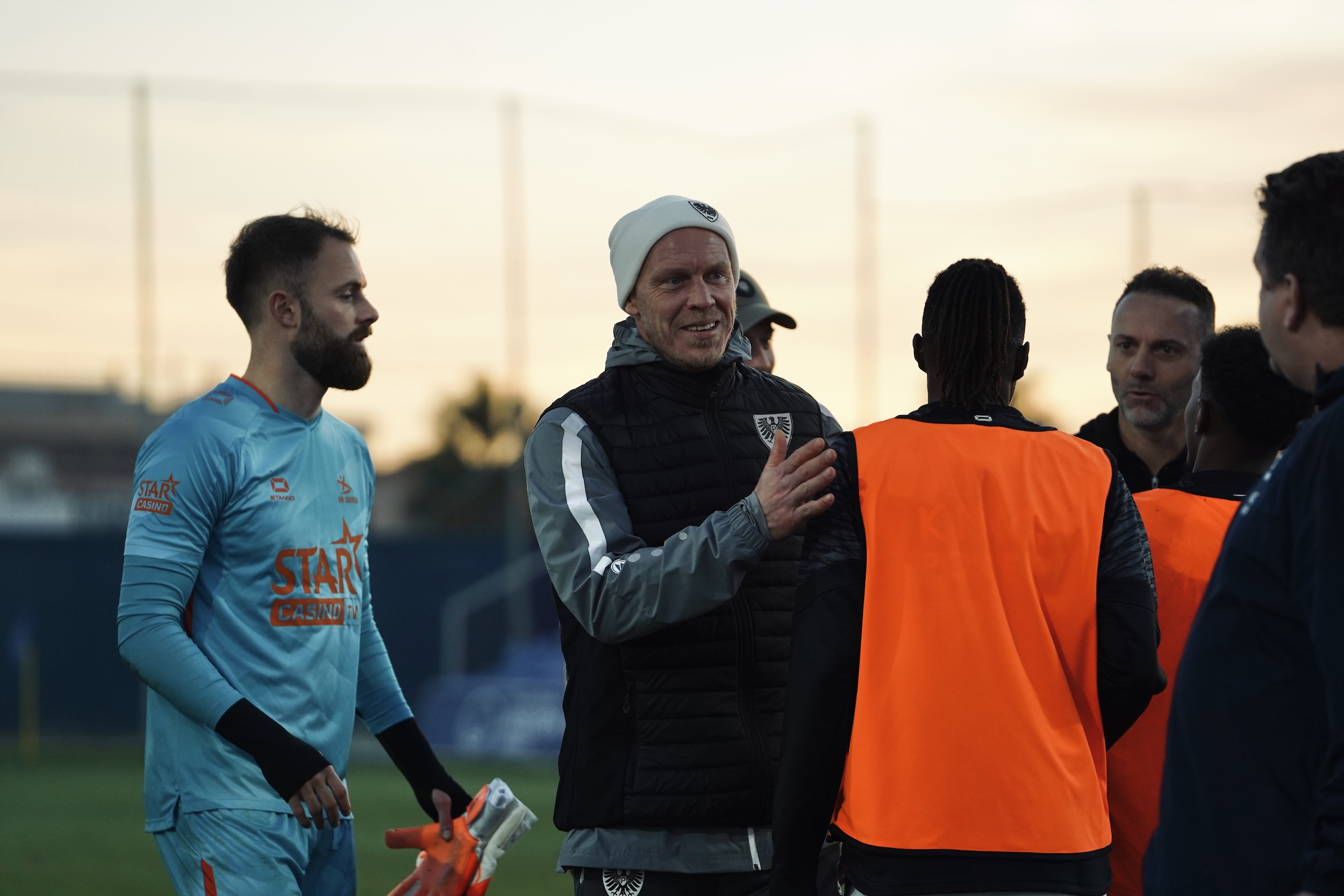 Den freien Nachmittag nutzten einige Spieler und Teile des Trainerteams, um bei herrlichem Sonnenschein dem Hotel für ein paar Stunden zu entfliehen und sich in der 20 Busminuten entfernten Pinatar Arena – unserem Spielort am Donnerstag – das Testspiel zwischen unserem Hotelnachbarn Servette Genf und unserem Ligakonkurrenten Holstein Kiel anzuschauen. Für ehemalige Störche wie Marvin Schulz, Mikkel Kirkeskov, Marcel Benger oder unseren Sportdirektor Jan Uphues war es die perfekte Gelegenheit, um ein paar bekannte Gesichter wiederzusehen. Auch einige Preußenfans mischten sich unter die Zuschauer. Die Partie endete 1:1-Unentschieden, die „Grenats“ glichen erst kurz vor Schluss aus.