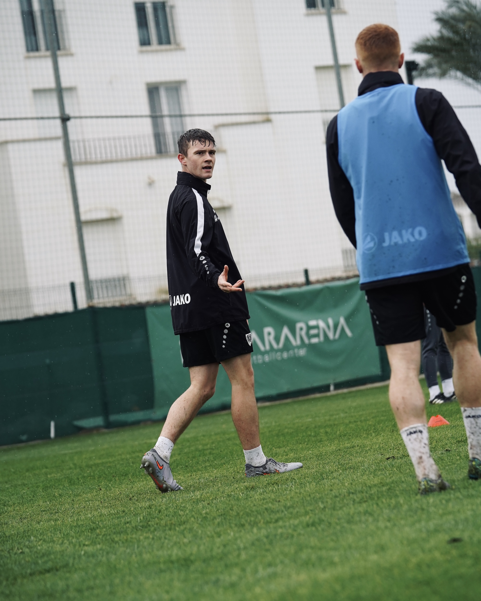 Am dritten Trainingstag erwartete die Adlerträger bei der morgendlichen Trainingseinheit erstmal spanischer Dauerregen, auch in der Nacht hatte es starken Niederschlag gegeben. Dennoch ging es raus auf den tiefen und durchfeuchteten Trainingsplatz – was das Team aber nicht von einer intensiven Einheit abhielt. Am Nachmittag verzogen sich die dichtesten Regenwolken und für die nächsten Tage ist eine deutliche Wetterbesserung in Sicht und vielleicht fällt so die eine oder andere Einheit noch etwas leichter.