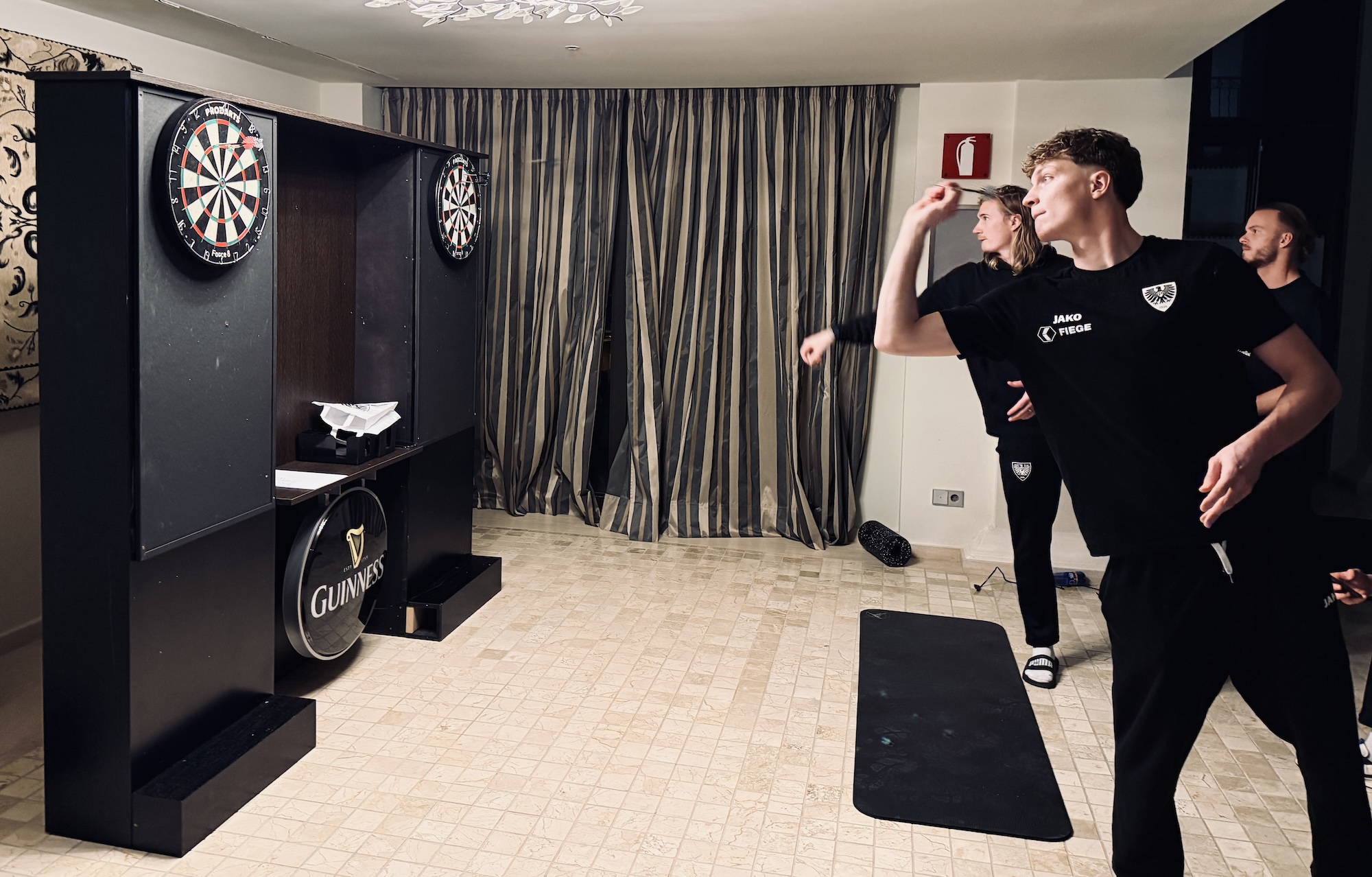 Onehundredandeeeeeeighty… Das Dart-WM-Finale im Londoner Ally Pally war natürlich auch bei unseren Jungs am Samstagabend das großes Thema – schließlich stehen viele von ihnen gerne selbst am „Oche“ und werfen auf das 2,37 Meter entfernte Dartboard. Zugegeben: Ganz so hoch wie zwischen Luke Littler und Gian van Veen ist das Niveau noch nicht, doch unter den Preußenspielern schlummern so einige Dart-Talente.